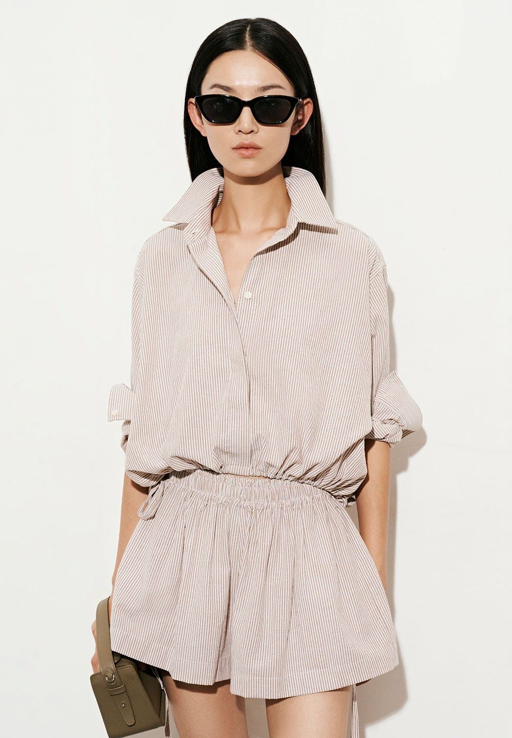 Blue Side-tie Silk Top  Blue Side-tie Silk Top